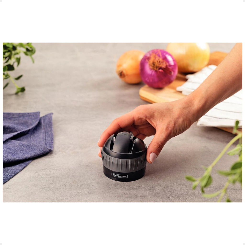 ¡El afilador de cuchillos Tramontina Profio negro es indispensable en cualquier cocina! ¡Con base antideslizante y dos etapas para afilar, garantiza el mantenimiento adecuado del filo de sus cuchillos y permite mayor facilidad y practicidad en su día a día!